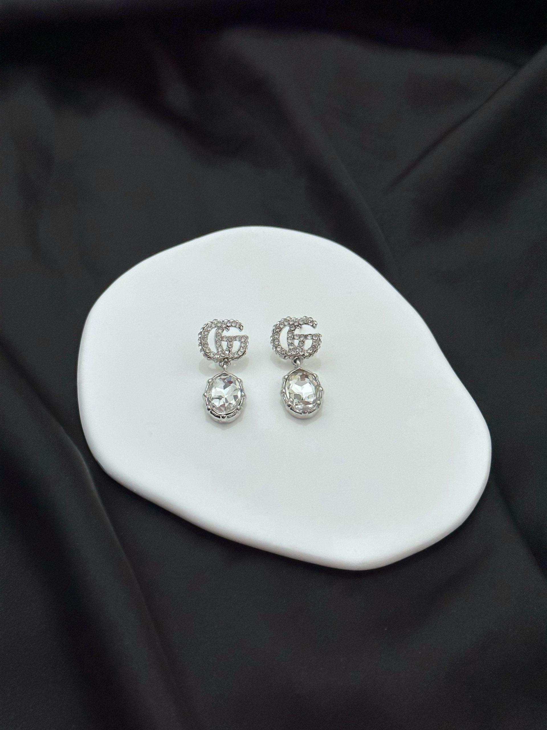 עגילי גיגי נוצצים במיוחד בצבע כסף בשילוב יהלום נופל