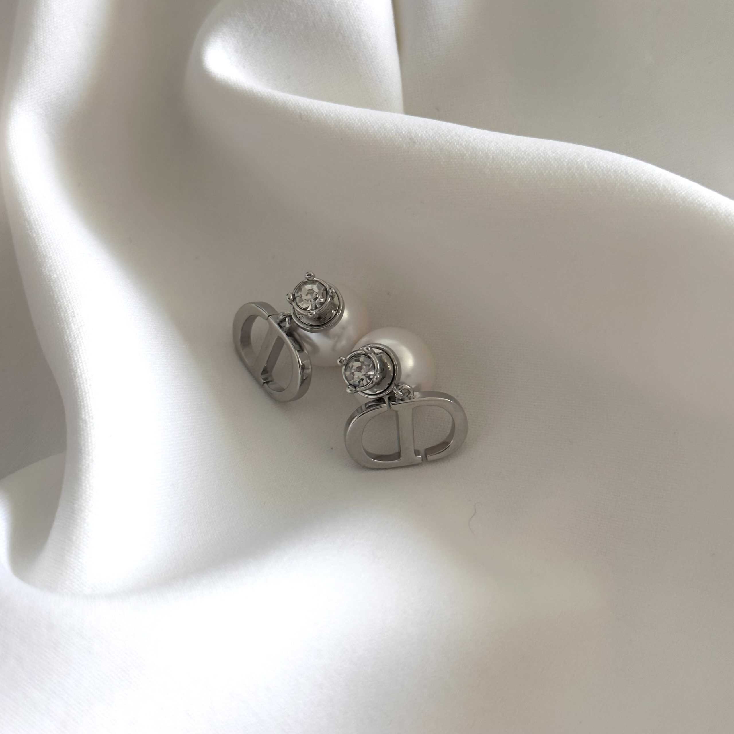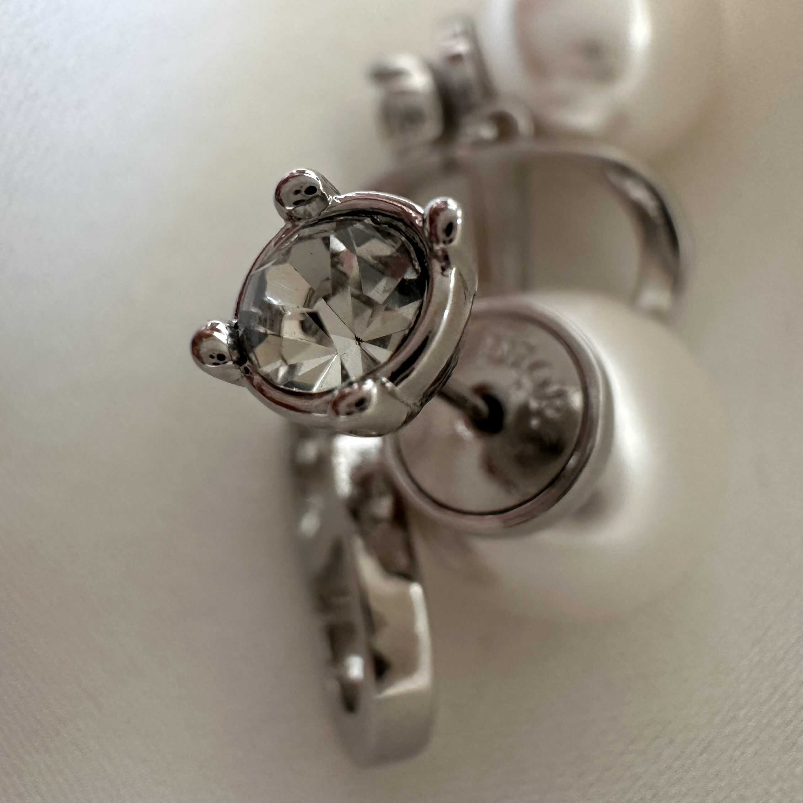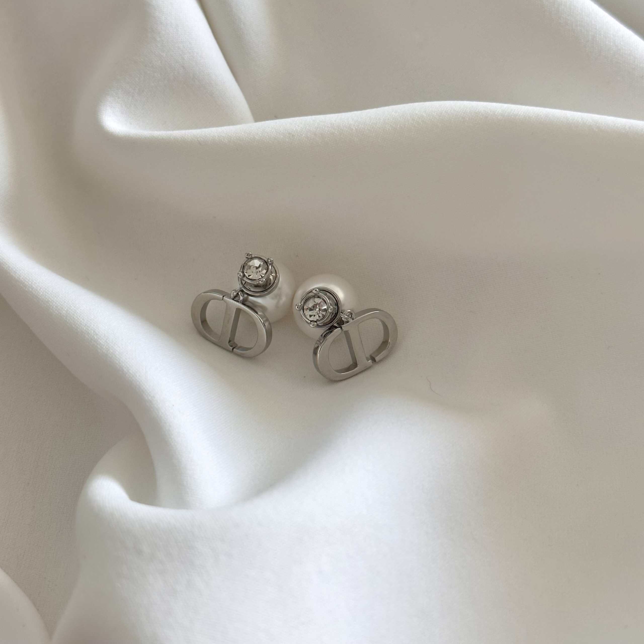 עגילי דידי בשילוב פנינה מאחור ויהלום צבע כסף