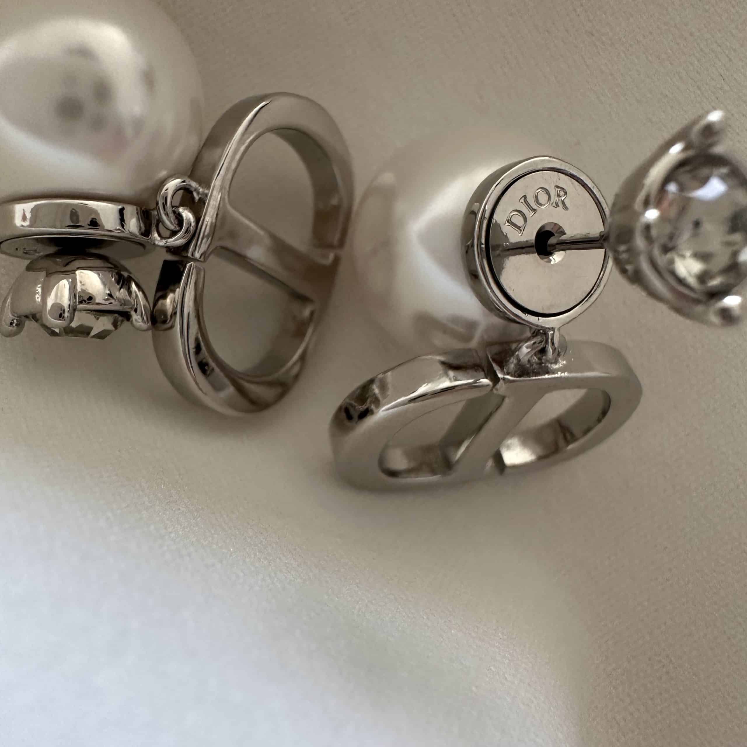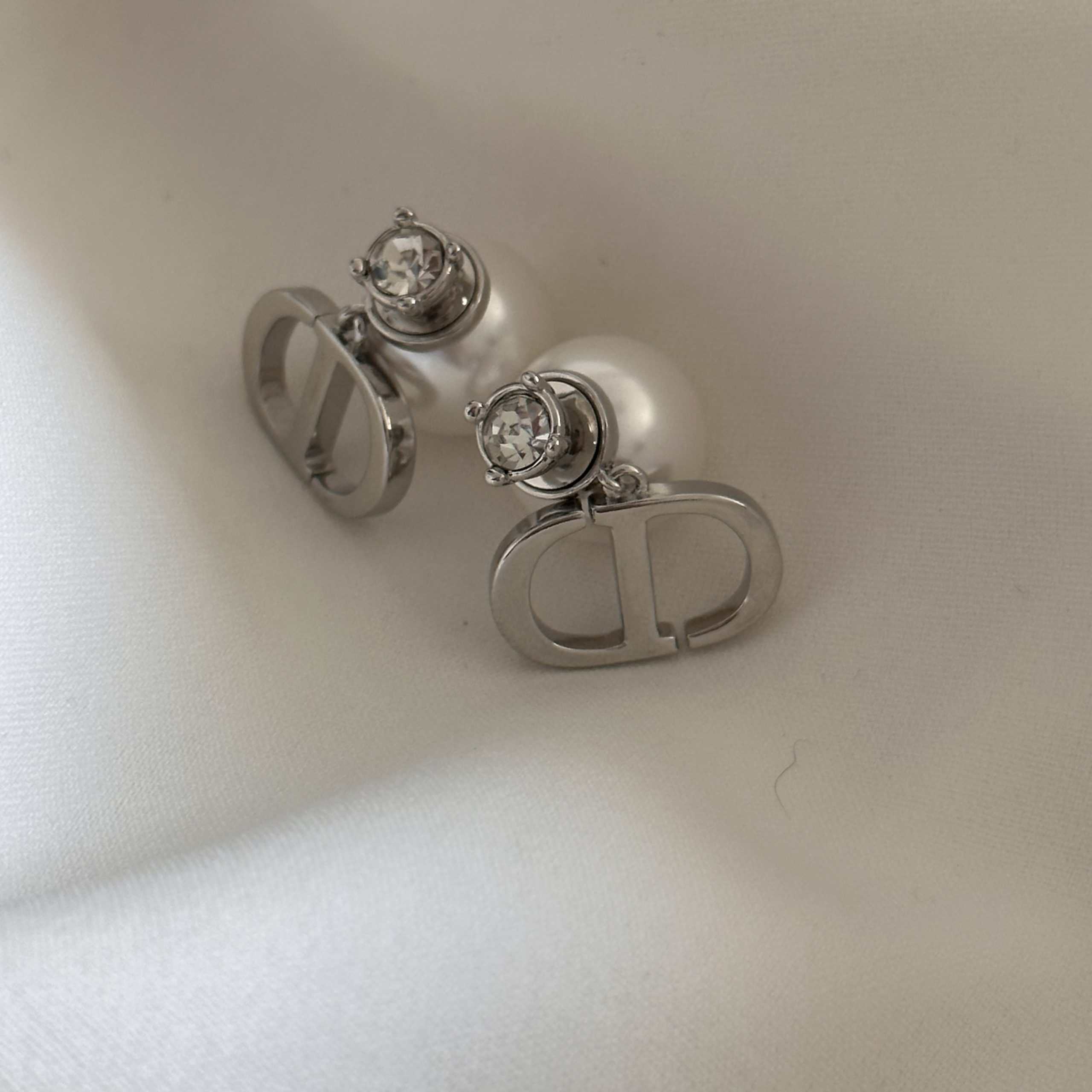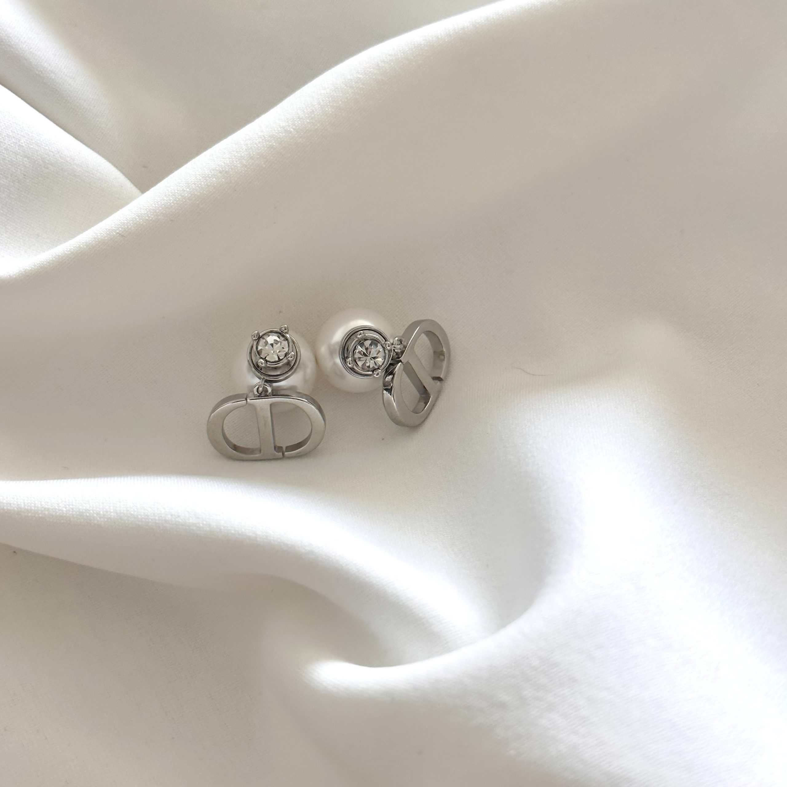 עגילי דידי בשילוב פנינה מאחור ויהלום צבע כסף