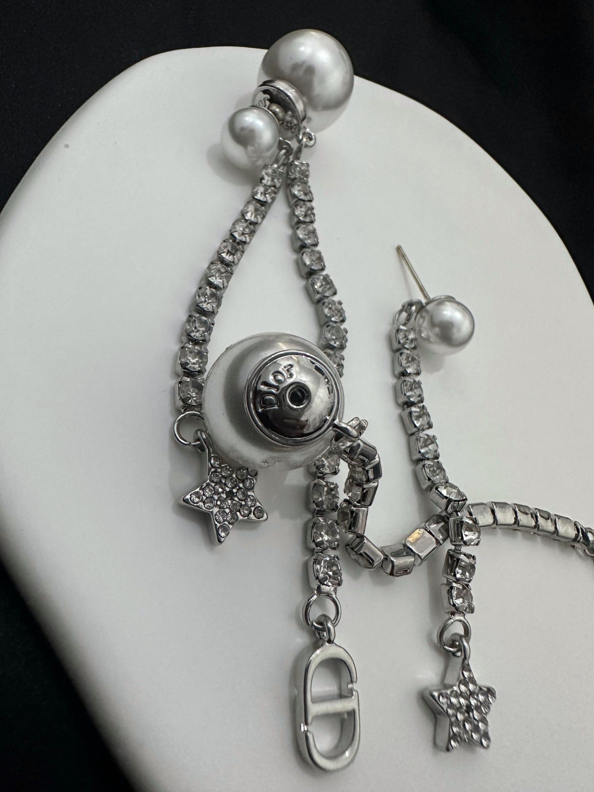 עגילי דידי נופלים צבע כסף נוצצים במיוחד בשילוב פנינה כפולה וכוכב נופל